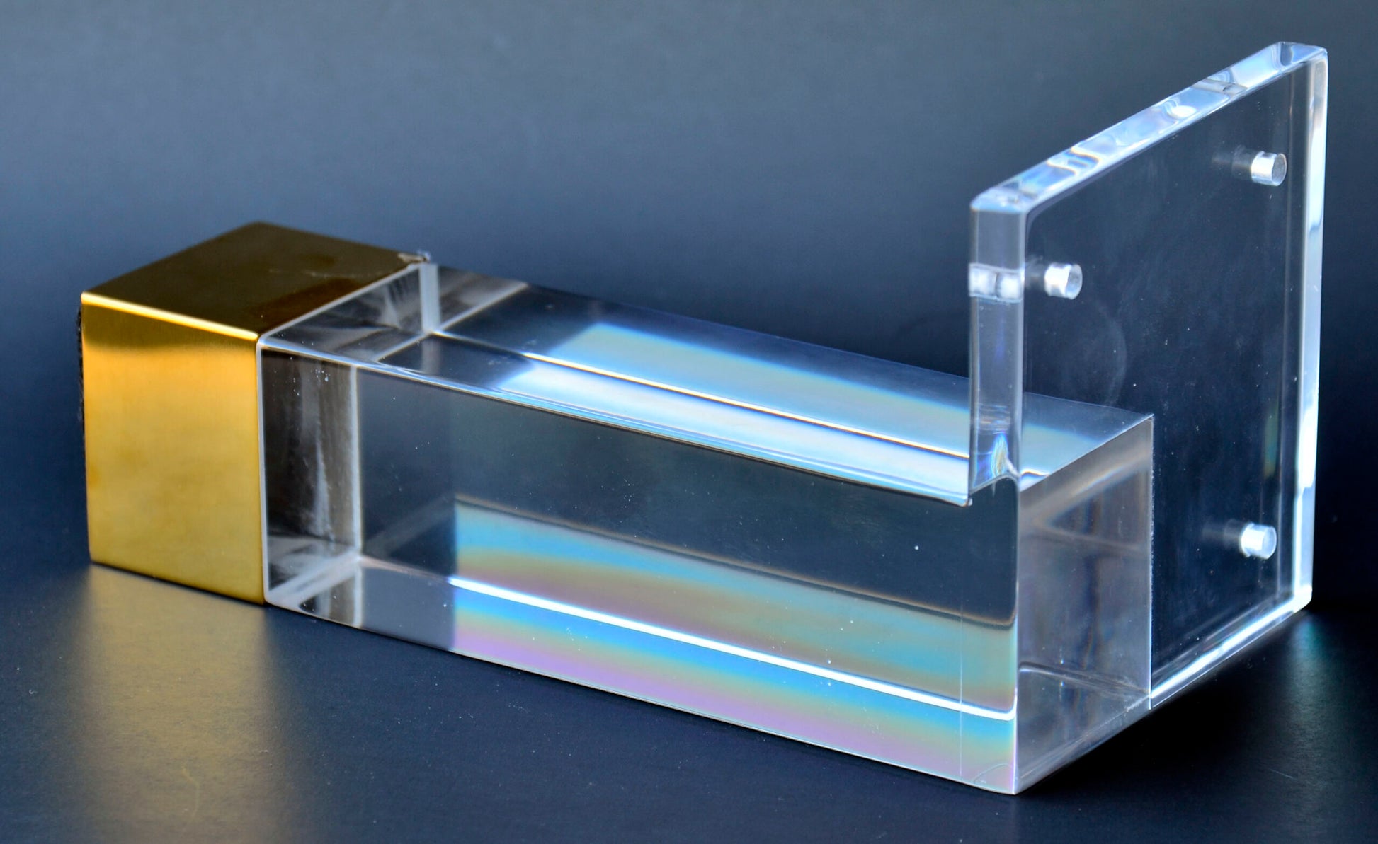 - Material: Large 7" acrylic Lucite straight square legs with 1.5" gold cap