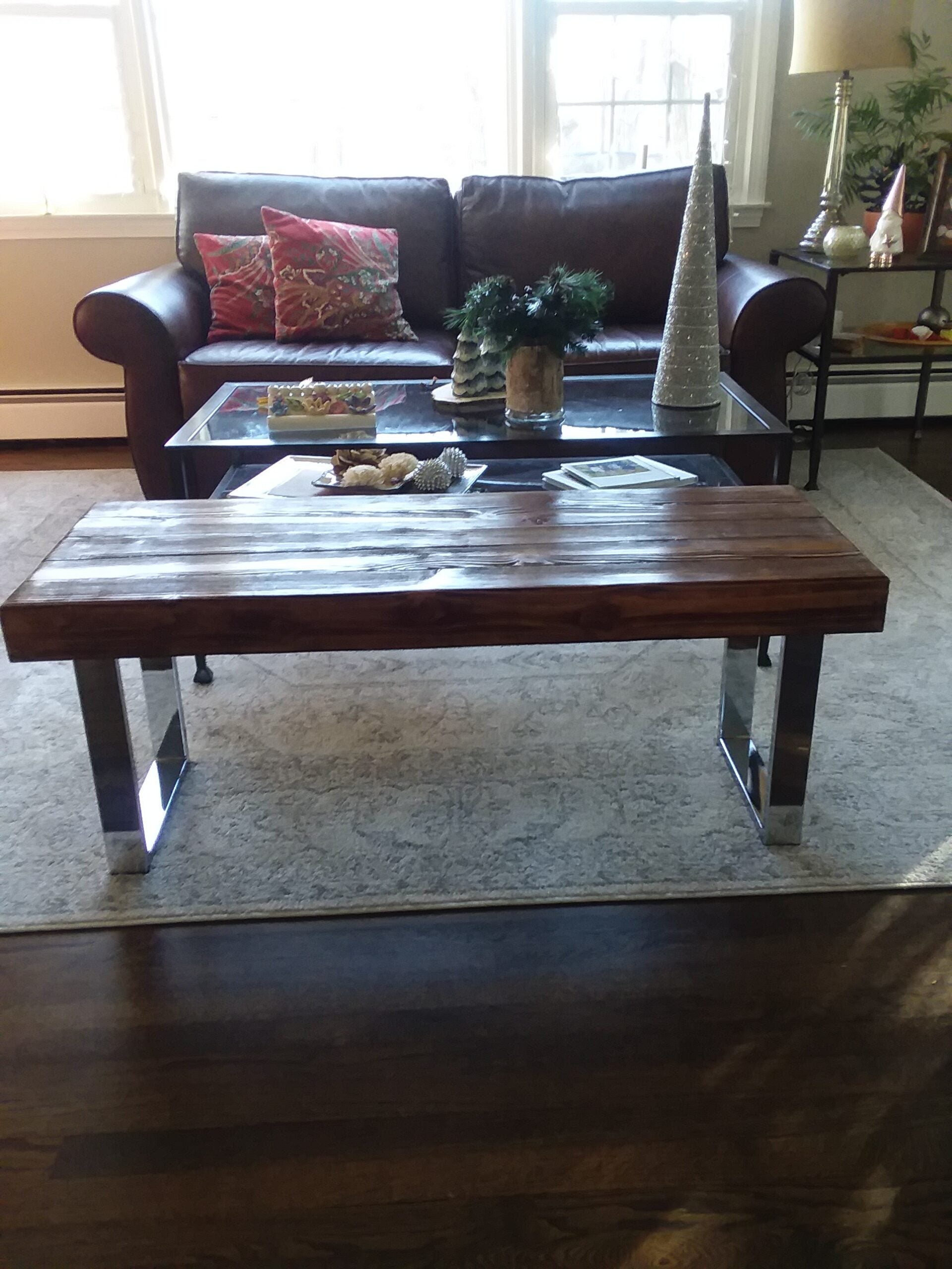 Coffee Table Legs Metal Legs Square Furniture Legs, 16" Stainless Steel Modern 2pc 161305SS
